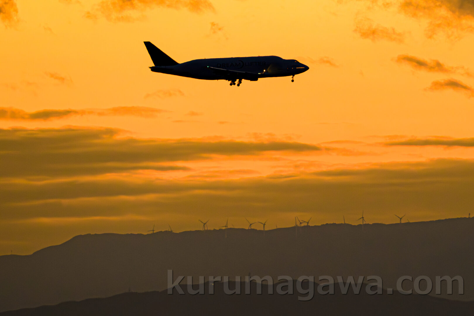 結果よりも、その直前に流れていた時間そのものを写した一枚だ。被写体はエバレットを発ちセントレアへ向かうLCF。到着予定は日没のわずか5分後。上空での風、先行機がなければ早着の可能性もあった、――そんな期待を胸に、ただ空の色が変わっていくのを待っていた。