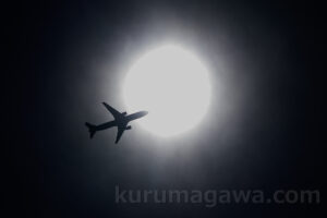 時間と共に霞み始めた空 太陽の周りに輪が出現しかけている 輪の中心機体を置きたいが進入灯がうまく収まらない 灯を取るか輪を取るか・・・ Nikon Z8 NIKKOR Z 20mm f/1.8 S