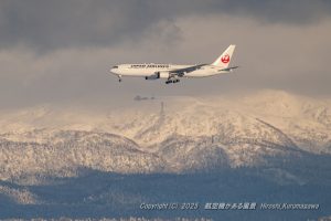 雲に覆われた十勝連峰 わずかに光が漏れている一角があった 逆光が注いでいる山肌は凹凸が浮き彫りになってる そこへ来たのはB737のJL551だった Nikon Z8 NIKKOR Z 600mm f/6.3 VR S