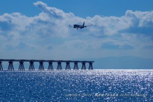 海上に突き出した進入灯 大分空港のシンボルと言ってもいいだろう 正午を前にド逆光でそれを捉えることにした ホーバーが就航するとここに飛び込んでくれるはずだ