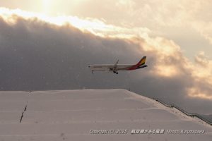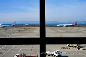 季節運航になってしまったセントレアー旭川便 年末年始に運航されたので利用した そろそろ搭乗という時にアシアナ機が到着 窓枠を利用して撮ってみた Nikon Z6Ⅲ NIKKOR Z 24-200mm f/4-6.3 VR