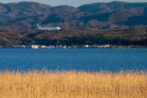 秋、ここ出雲の主役と言えばJL283 湖面の進入灯がメタリックに輝く時間帯だ しかしそれは前にも見たことがある光景 今年は贅沢にもそれを外して秋色を捜した