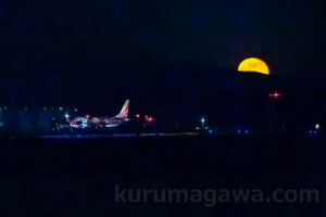 現場へ着くや否や、香港へ向かうA330が月を横切るのを目撃 この悔しさを果たすべく、この日は上空に注力 機体に光が当たっている時間と月 それは満月ではなく、これくらいがいい