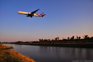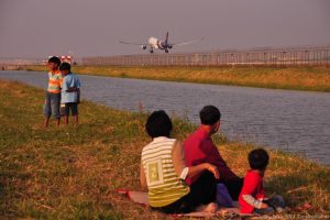 この時期でも昼間は暑いバンコク 夕暮れ時になると涼を求めて人が集まってきます ヒコーキを眺める国民、日本人だけではなさそうでした