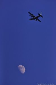450mm角のノートリです この後のC130は、月にフレームを合わせて待っているとファインダーの外を通過してゆきました 900mm角で迫りたいところですが、大博打ですね