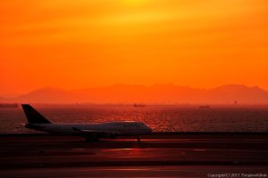 甲高いエンジン音で逆噴射を終えたB747 この静寂が長旅の終わりを告げているようです いよいよGW、そして来月は夏至 陽の落ちる時間も刻々と遅くなり、この時期でないと夕陽が絡まない便が楽しみです