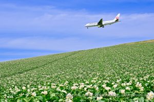 青空を背景に北風で降りてくる便は限られていた どの畑も鮮やかに咲いている 白い花、紫の花・・・ 他の場所にも立ちたい気持ちを捨ててここを選んだ Nikon Z9 NIKKOR Z 14-30mm f/4 S