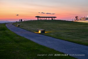 丘と樹のある公園 曲がりながら登ってゆくこの路がいい その先に少年たちのシルエットが踊る そこへ羽田行きのAIR DOが発って行った Nikon Z9 NIKKOR Z 50mm f/1.8 S