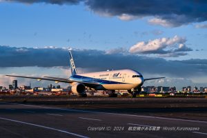 退役が噂されるB777 この日は絶好の光を背負ってタキシング バスを降りた時のシーンだった 最も想い出深い777だ Nikon Z7Ⅱ NIKKOR Z 24-200mm f/4-6.3 VR