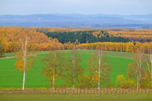上空から見ると人の手で植えられたのがはっきりわかるカラマツ林 確か40~50年で伐採されると学んだ その50年目が去年だった林もあるということ この風景にもそんな一角があるはずだ