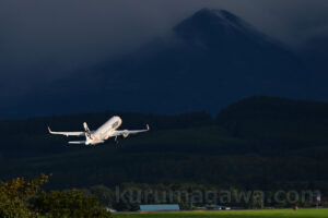 ラインアップした場所でスポットライトを浴びていたジェトスター 局所的な光だろうと思っていたら エアボーンしてからもまだまだ続いた 地表に注ぐ光も大切だ