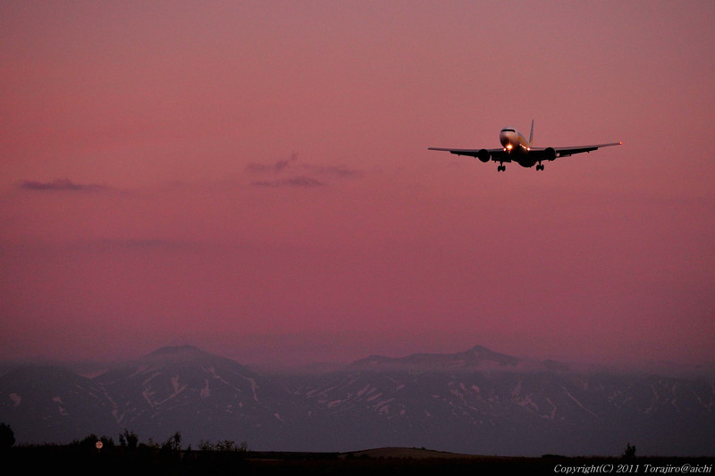 航空機がある風景-十勝岳-