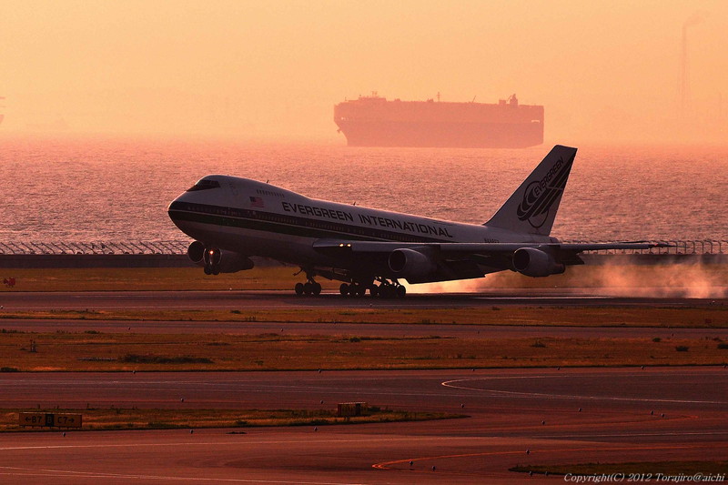 真上を拝めない海上空港では、春霞に泣かされる日中です