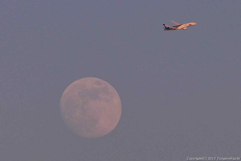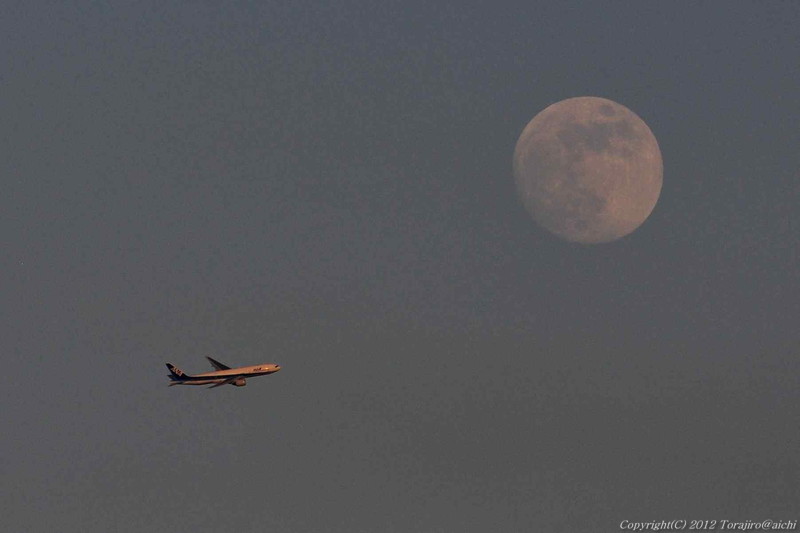 -満月前夜- 2012.07.07 c.羽田空港 実際には満月の二日前 これだけトラフィックがあれば、「串刺し」連発と思っていましたが・・・・ 月の上を行ったかと思えば 次は月の下を そして次も月の下を 気がつけばいずれの便も月の下を通るように・・・ そうタイムオーバー かなり甘いですが、これが一番ヒットした便 これらはD90+200mmをトリミングしてあります 今度はロクヨンで参戦する意欲が湧いてきました