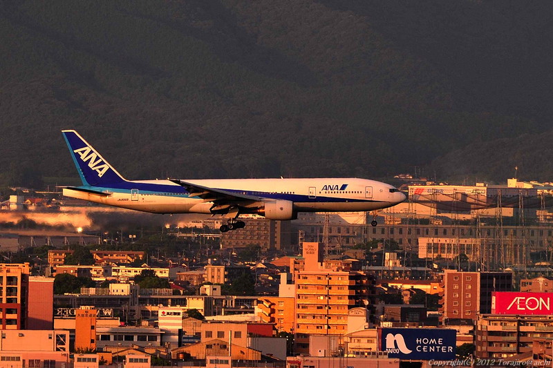 今度は南風に変わり、斜陽を浴びながら降りてくるANA