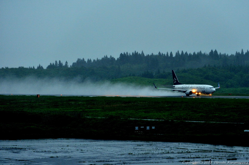 変態と呼ばれる由縁 2013-07-18 最終更新日時 : 2013-07-18 私の周りで写真と追及している人は「変態」と呼ばれている 最近ようやくその意味が分かってきた 「雨は強いほどうれしい」 と雨の日やその夜を好んで撮影している人がいるのだ 確かに普段は見えない光景がそこにはある トラフィックが少ない上に大雨 溜めにためた雨水を一気に蹴ってテイクオフ 日に2便しか来ない空港 B737に50名ほどが乗って羽田へ向かった