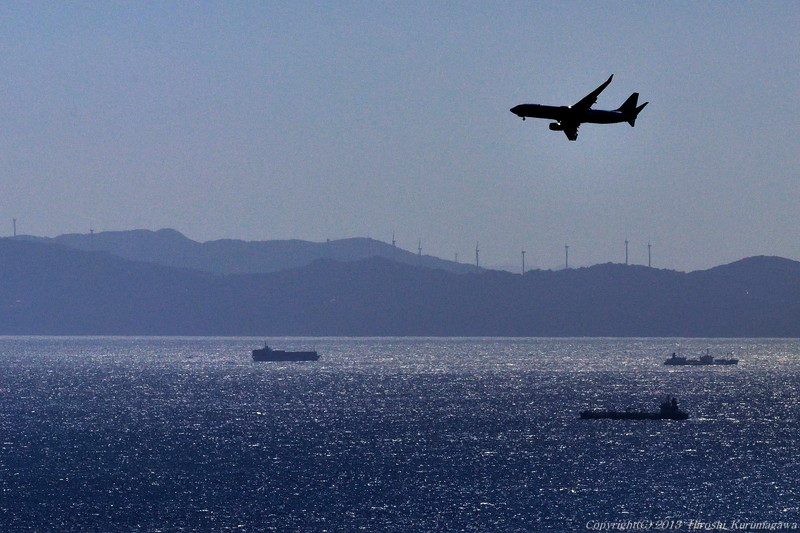 北風の場合には一旦空港を通り過ぎて南側からUターンで降りてくる