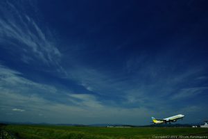 これは雲を見て構図を固定 離陸機は成り行きで置いた一枚だ 動体の進行方向には、スペースを設けるのがセオリーとよく言われる 大きなお世話だぜ