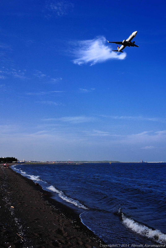 水際の風景 2014.08.12 c.羽田空港 おなじみ城南島公園 なんとなく湘南に見えてきた 砂浜の湾曲を見ながら、立ち位置を変えてみたり、しゃがんでみたり 白波と同期させるようにリズムを刻みながらシャッターを押した