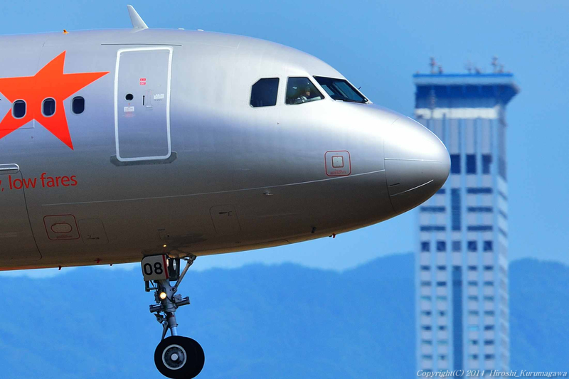 緊張の空気 2014-08-15 最終更新日時 : 2014-08-15 着陸寸前のジェットスター 圧縮効果で、背後のビルがいい空気感を出してくれた ピーンと張り出した前足と副操縦士の眼差し 最も緊張しているだろう瞬間だ