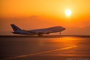 昨日の未明から次々にジャンボカーゴが飛来 LCFを入れると5機飛来したようだ 珍客の離陸と夕陽が絡むなど年に何度もあるわけもない それでも何度かはあるものだ