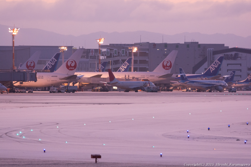 冷静 2015.02.04 1.大阪空港 冷たくて静かな様子をタイトルにしようと当て字を書いたら冷静 こういう様を言うのだと再認識 夜明け前に出かけたら、どうも積雪らしいことに気が付いた 夜が明けるにつれてその様子が見えてきた 下河原からターミナルをのぞめば、いつもとは違う柔らかい情景が広がっていた