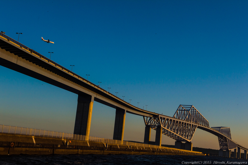 高架橋の美 2015.07.24 c.羽田空港 首都高のジャンクションに魅せられた方の写真集を見たことがある たしかに見ているだけでも楽しいし、夜ともなれば美しい この橋、鉄骨の骨組みだけでなく 手前の道路がカーブしているところも見逃せない