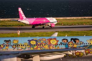 嵐の気配 2015-08-04 最終更新日時 : 2015-08-04 南から真っ黒な雲が漂い始めた 西の空には夕陽が見え隠れしている 案の定、虹も見え隠れ 並んでいるLCFの内、一機をバッサリと切り取った贅沢な一枚だ