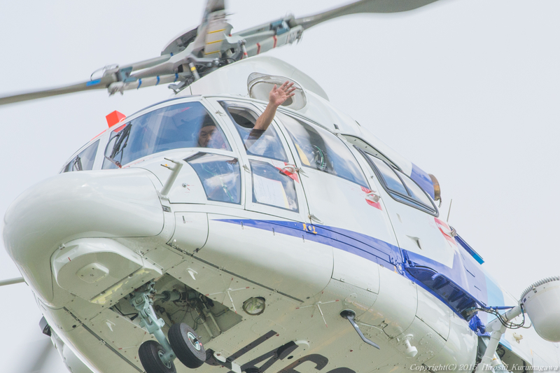 サービス 2015.08.16 1.大阪空港 離陸したヘリからなにかが・・・ 旅客機でも展望デッキに向かって手を振ってくれたりするのがこの業界 完全に私に向かってのサービス いくつになってもうれしいものだ