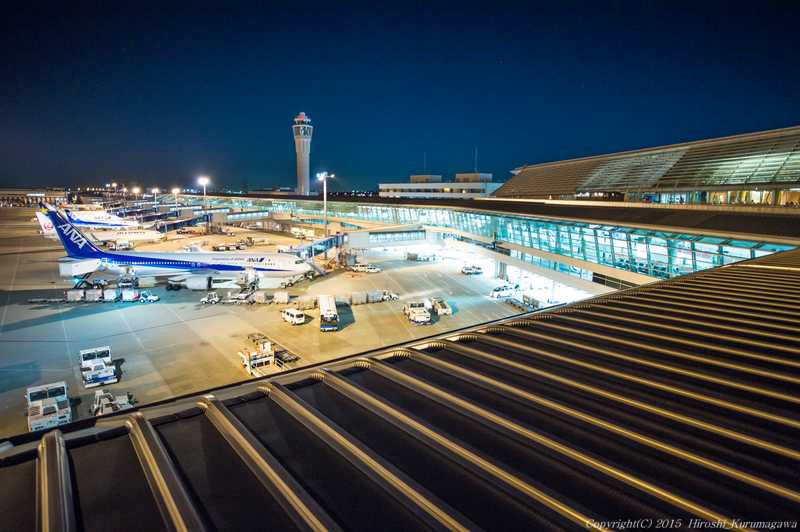 定番ロケ 2015-10-28 最終更新日時 : 2015-10-28 スカイデッキに出てすぐのポジション 管制塔を入れて構図を探す まずは尾翼が整然と並んでいた方がいい(この日は叶わなかった) ターミナルを近代的に写し込みたい この作品では足元の屋根を写し込んだのがワンポイント ターミナルが L型であるセントレアらしさの一味だ