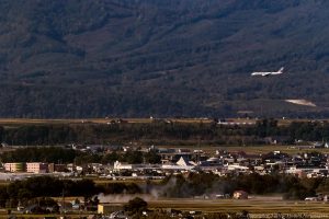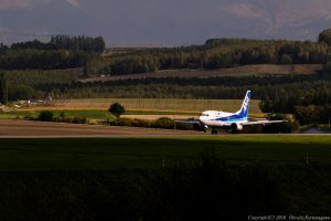思い切って空港から離れてみた 遠くで栄えているのが旭川 北側からアプローチしてきた到着機を絡めたもののさすがに小さい それでもずっと思描いていたものを撮れた