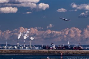 広島で豪雪になった日、欠航も相次いでいたようだ 羽田の西側にも鈍い雲が立ちこめていた 出発が少々遅れたのも災いした結果・・・ 機体に光が刺さず、この日らしい寒々しい作品になってしまった