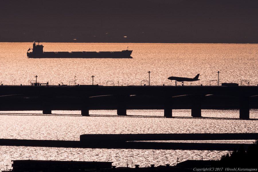 心躍る輝き 2017-04-05 最終更新日時 : 2017-04-05 視程を懸念しながら現場へ向かった 風向きは真南、北側から到着機が降りてくる状態 山越えをして目の前に広がったのは眩い伊勢湾だった 水面が大変美しく輝いていたので、今日の主役を決めた