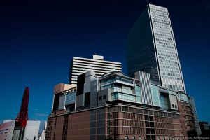 最近のビルは個性的 光が当たるとその個性が強調される 西面に露出を合わせて南側をシャドーで潰す その隙を「スッ」と降りていくのは夏の那覇から飛んできたトリプルセブン