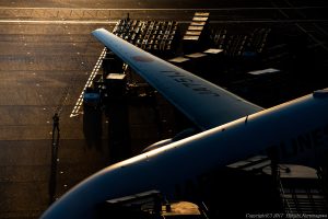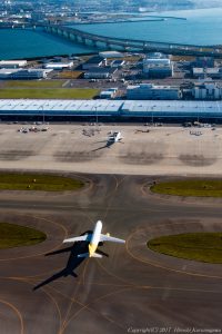 西日へ賭ける 2017-11-21 最終更新日時 : 2017-11-21 夕陽を逆光で撮るのか、それとも順光で撮るのか 海上空港でなければ決断の時が来る 国際線ターミナルでこのまま撮影するのか、それとも第一ターミナルへ移動するのか・・・ わずか2便ほどだったが、順光の構想が実った