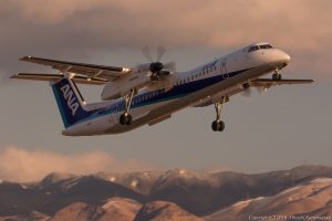 日に一本のANA、セントレア便 赤や黄色が入らない唯一の機体 グッと引いた場所から望遠レンズで山を引きつける 超望遠レンズの楽しい使い方 D850 500mm