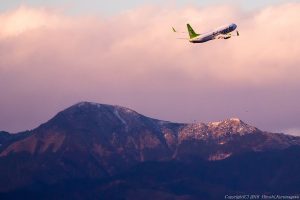 空港の北側など撮影しやすい熊本空港 俵山をバックに撮りたい気持ちを抑えて新たな場所に立ってみた もっと早く上がると誤算していたので中途半端な構図になった まあ初めてのことやし、今日はこれくらいにしといたる