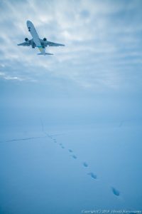 国道の温度計は-15℃を指していた 風が弱いため体感温度は耐えられるレベル 寒々しい木々を見つけて待ち受けることにした 役者はエアドゥのB767 もう少し早く上がってほしかった