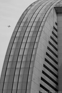 パシフィコ横浜の上空 北九州や中国に向かう便が飛ぶ 天気が悪かったので色の情報を消し 飛行機が小さいので自分を絡めた