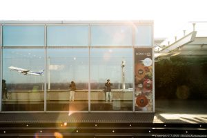 羽田空港第2ターミナル 春霞で刺激のない午後だった レストランのガラスで枠組みを作り 離陸機が飛び込んでくるのを待った