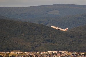 日に何便かあるなかでJL555/556は外せない 白い機体が陽の色を浴びて柔らかくなる時間帯だからだ これからの季節、徐々に木々の色が変わっていく 同時に日の入りの時間も早くなる Canon 7D2 100-400mm