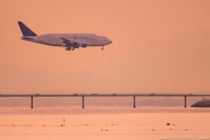 このまま飛んでくれれば夕陽と離陸がシンクロする コックピットではベルを4回鳴らしてラインアップ こちら側ではカメラの設定を再確認して息を止める 双方準備完了