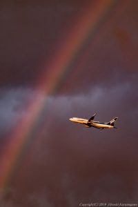 このまま飛んでくれれば夕陽と離陸がシンクロする