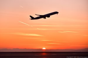 朝陽を浴びてタキシングする二機