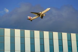 天空橋に建設中の大きな建物 羽田イノベーションシティーというものらしい 完成すれば誰でも入れそうなので楽しみだ そんな建物とは知らずに撮った一枚、B767がガツンと上がった