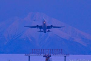 今年は山が黒いので冬らしい画がない 機体や四日市の工場に射している横からの光が季節感 A350が転回して真正面を向いた3コマ後の絵を選んだ この方が構図が落ち着いて見える Nikon Z6