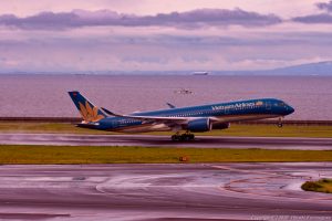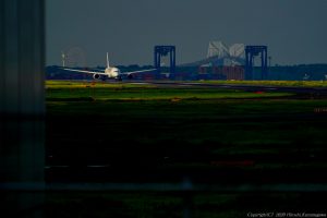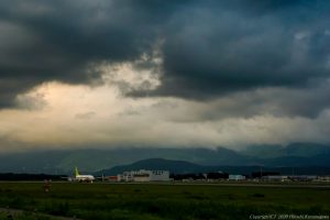 RWY22、先行機を見送った時に機底が美しかった 次に上がるのは伊丹行 黒い雲を対角線に配しながら機体を追う こんな作品はどこかで役に立つ時が来るものだ