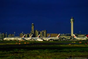 強烈な西日を浴びている機体と照明灯 エンジンの横にいる人を見ながら連写した 光の当たり方や足の開き具合、姿勢を見てこれをチョイス ここは夜景も燃えそうな予感