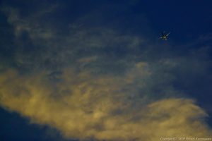 地上に注ぐ光がなくなった 飲まず食わずだったので撤収しようとしていたそのとき RWY16Rから上がった機が頭上に来た 機体が眩いほど輝いている