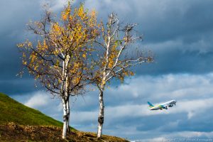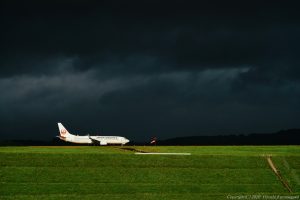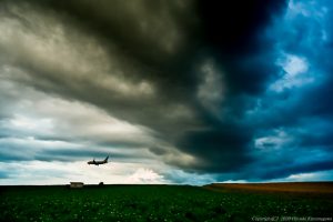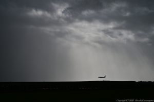 暗黒の雲を背景に光を浴びる被写体 これはいつも興奮するシーンだ カメラ任せでは機体が完全に白飛びしてしまう ミラーレスカメラなら瞬時に設定を決められる
